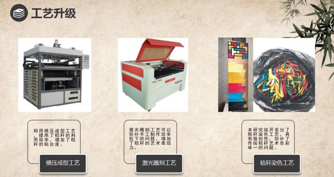 作品創意點:將傳統的秸稈拼畫技術進行現代化升級,使其滿足現代人們的審美,提高了其工業化生產能力。設計的家具既可以古樸典雅,也可以時尚前衛,是對傳統家具裝飾設計的突破。且設計理念低碳環保,符合國家對綠色經濟的提倡。