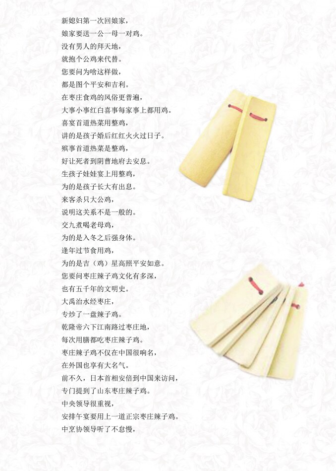 1.棗莊辣子雞是棗莊地區獨一無二的特色美食,有文化、有歷史、有民俗,深受廣大人民的喜愛,是棗莊市的一張城市名片;