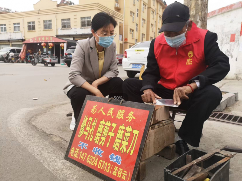 耄耋之年的孟召云,神采奕奕,面色紅潤。他是柴里煤礦采煤一線退休職工,退休前在工作崗位上,愛崗敬業,認真工作。退休后的孟召云一直住在柴里礦社區,對礦區有著濃厚的感情,總想著為社區群眾做點有意義的事情。社區里老年人多,一天,他在廣場散步時,聽到大伙念叨家里的剪刀鈍了,找不到地方修;再一看有的老人坐的馬扎框架有裂縫、尼龍繩也有斷裂,很不安全。他看在眼里、記在心里,自己掏錢,買來了磨刀石、尼龍線、角鐵、膠水、鉗子、斧頭、木鋸等工具,準備了一輛電動三輪車,并在車前豎起一塊印有“修馬扎磨剪子菜刀、不收費”字樣的牌子。就這樣,他為社區群眾義務服務的“移動式修理站”開張了。一有空閑,孟召云就騎著三輪車,穿梭于礦區各個社區,誰要是出門不方便,只需打個電話,他就上門進行服務。