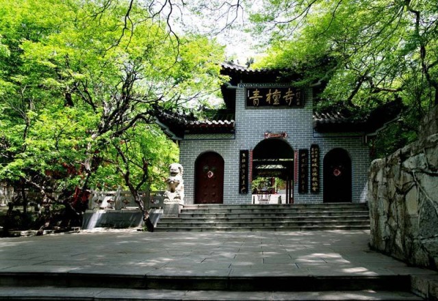 山谷中多青檀樹,寺廟也因此而得名。千年古檀枝繁葉茂,盤根錯節,虬龍般的枝干高聳云天,能讓人想起“青檀繞殿碧云齊”的佳句。 古寺早已敗落,更不見如巢的僧屋。丹爐去還在,只是少了善男信女的香燭供奉了。寺前高大挺拔的銀杏樹傲立千年,卻依然蒼勁茂盛。滿樹的黃葉在風中排拍著天。成群的喜鵲在林中鳴叫,似是不滿,有人打擾他們的清幽。 院子里的跑堂井早已干涸,井壁上的繩痕卻能讓人想到當時僧人取水的繁忙景象。