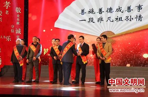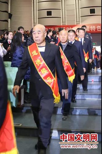 全國道德模范提名獎獲得者紀俊泉為誠實守信好人代表頒發道德傳家寶。中國文明網 項麗 攝