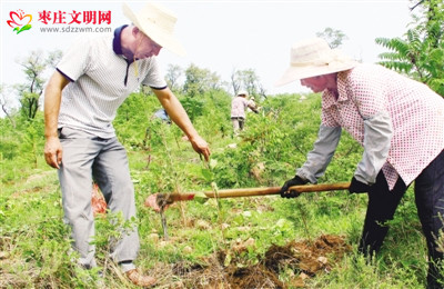 圖為8月8日,薛城區(qū)常莊街道組織人員在金河山造林。