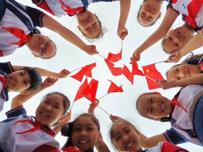 啟動儀式后,廣大少先隊員與國旗一起創意擺拍,用孩子獨特的視角表達對新中國成立70周年的祝福。