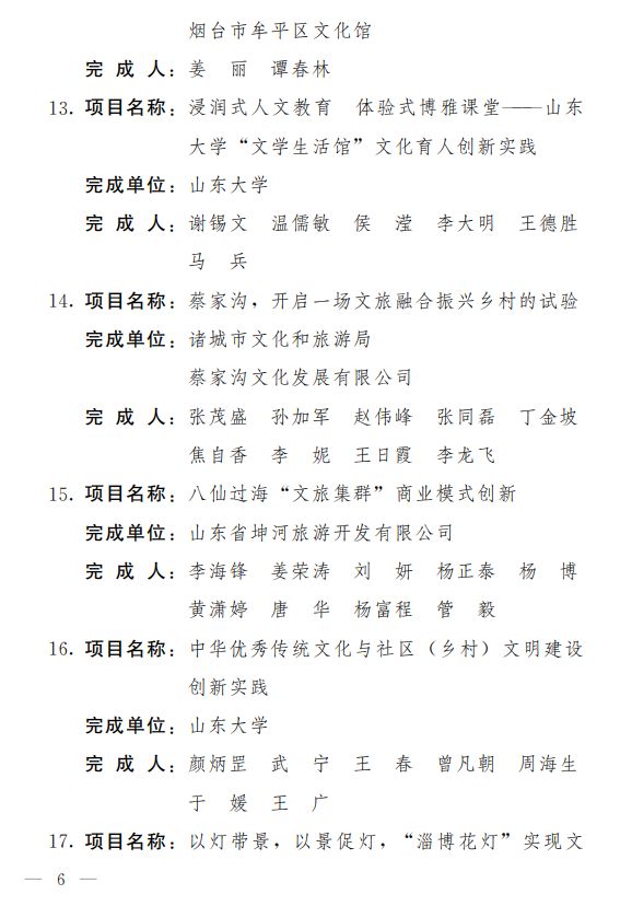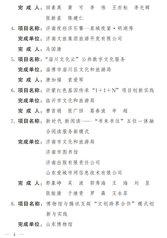 關于公布第四屆山東省文化創新獎