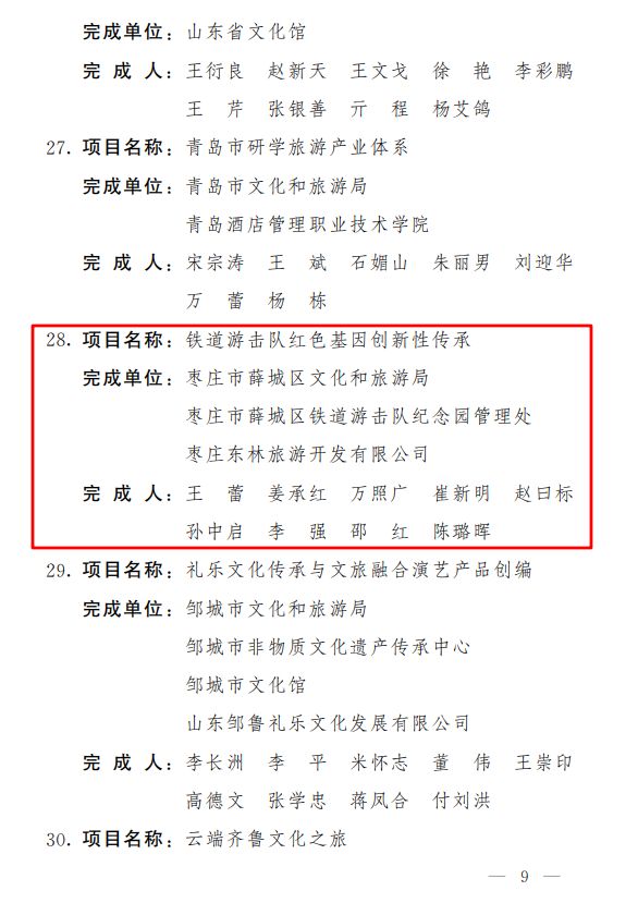 第四屆山東省文化創新獎獲獎項目名單公布,棗莊市2個項目獲獎