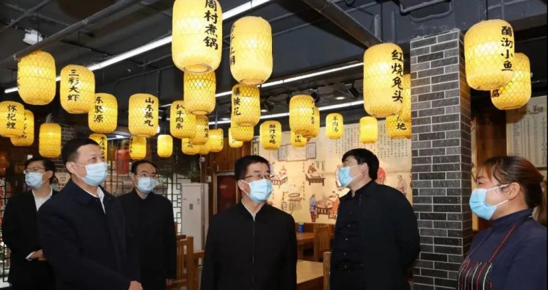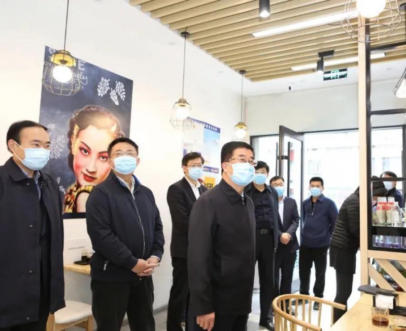 李峰還來(lái)到臺(tái)兒莊古城景區(qū)調(diào)研。在游客服務(wù)中心,來(lái)自濟(jì)寧鄒城的89歲老人季德榮正在家人的陪同下辦理入園手續(xù),李峰向老人致以親切問(wèn)候,并對(duì)她來(lái)我市觀光旅游表示熱烈歡迎。在木和堂客棧,李峰向業(yè)主詢問(wèn)了店內(nèi)防疫措施、游客住宿和線上預(yù)約情況。在復(fù)興廣場(chǎng),李峰與正在觀看舞獅表演的游客交流,聽(tīng)取他們的需求和意見(jiàn)建議。在古城文創(chuàng)旗艦店,李峰查看了特色產(chǎn)品,鼓勵(lì)商家要進(jìn)一步挖掘棗莊文化內(nèi)涵,推出更多富有地域元素和古城特色的文創(chuàng)產(chǎn)品。在東聚源酒店,李峰了解了特色菜品和經(jīng)營(yíng)情況,勉勵(lì)業(yè)主要堅(jiān)定信心、保障食品安全,為游客營(yíng)造放心的餐飲環(huán)境,并祝愿開(kāi)市大吉。