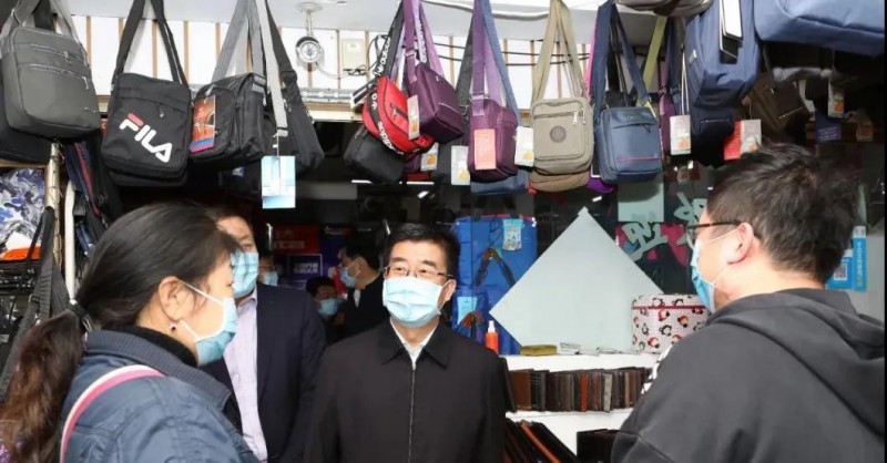 李峰隨后來(lái)到位于市中區(qū)的新昌批發(fā)市場(chǎng),聽(tīng)取了市場(chǎng)防控措施、商鋪營(yíng)業(yè)、消費(fèi)人氣等情況的匯報(bào),還走進(jìn)南方恒大箱包、蘇泊爾電器、A派季語(yǔ)等攤位,與業(yè)主詳細(xì)交流,了解了近期經(jīng)營(yíng)和存在的困難,以及租金減免等措施的落實(shí)情況。李峰表示,當(dāng)前市場(chǎng)正在逐步恢復(fù),商家面臨的困難是暫時(shí),有壓力還要有信心,要繼續(xù)搞好經(jīng)營(yíng),滿足群眾日常生活需求;要充分依托電商平臺(tái)開(kāi)展線上交易,拓寬銷售渠道,提高經(jīng)營(yíng)收入。市場(chǎng)管理方要做好疫情防控、物業(yè)服務(wù)和消防安全,確保市場(chǎng)運(yùn)營(yíng)安全有序。各級(jí)各部門要主動(dòng)作為、靠前服務(wù),落實(shí)好各項(xiàng)幫扶政策,切實(shí)減輕中小微商家負(fù)擔(dān)、推動(dòng)經(jīng)營(yíng)重回正軌,讓市場(chǎng)人氣熱起來(lái)、消費(fèi)旺起來(lái)、城市經(jīng)濟(jì)活起來(lái)。