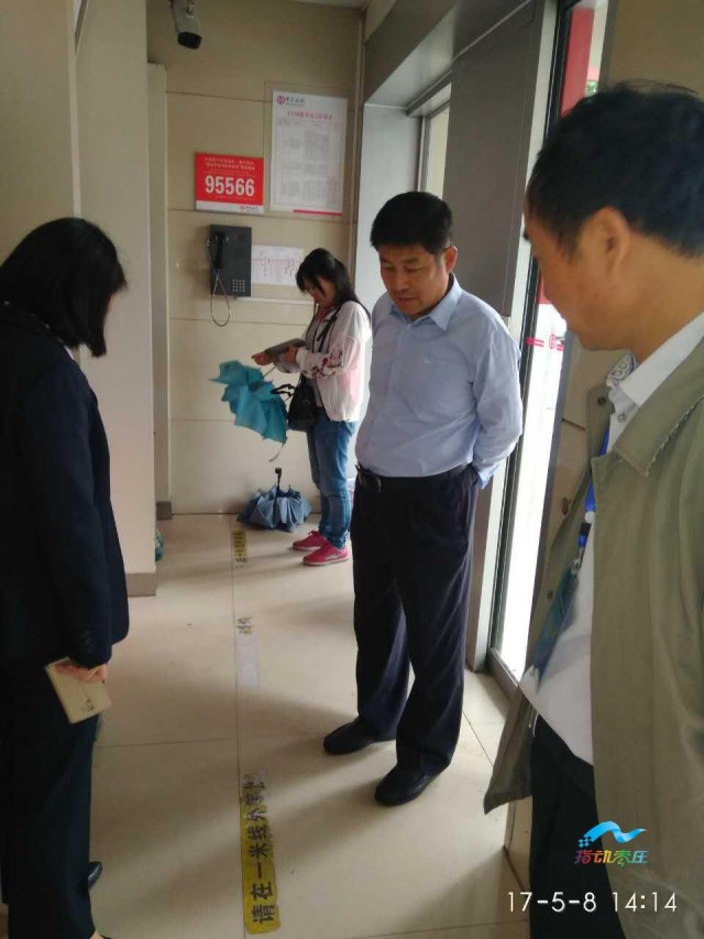 5月8日下午,棗莊市文明城創建辦公室安排督查人員對金融行業進行督查。其中薛城督察組赴多家銀行網點進行現場督察。