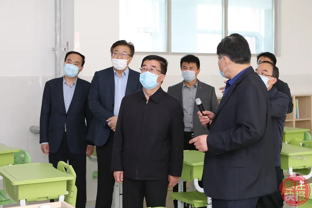4月7日下午,市委書記、市疫情處置工作領(lǐng)導(dǎo)小組組長李峰督導(dǎo)檢查開學(xué)復(fù)課準(zhǔn)備工作。市委常委、秘書長朱國偉,副市長周宗安參加活動(dòng)。李峰先后到棗莊實(shí)驗(yàn)高中、棗莊理工學(xué)校、薛城舜耕實(shí)驗(yàn)學(xué)校、棗莊八中(北校區(qū)),督導(dǎo)檢查各個(gè)學(xué)校的開學(xué)復(fù)課準(zhǔn)備情況。每到一處,李峰都詳細(xì)聽取了師生進(jìn)校流程、校園疫情防控和應(yīng)急處置、教學(xué)食宿安排、網(wǎng)上教學(xué)和開學(xué)準(zhǔn)備等工作的匯報(bào)。