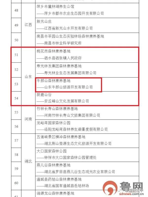 6月5日,國家林業和草原局辦公室、民政部辦公廳、國家衛生健康委員會辦公廳、國家中醫藥管理局辦公室公布了國家森林康養基地(第一批)名單,山東省共4家基地當選,棗莊市市中區永安牛郎山森林康養基地位列其中。