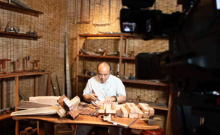 魯班天工木藝公司負責人李浩在進行網絡直播