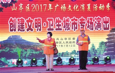 7月12日,山亭區“廣場文化消夏活動季”啟動,當日進行的是創建文明·衛生城市專場演出。山亭區今年的廣場文化消夏活動共安排7場群眾性主題演出活動,全面展示山亭區地方特色,豐富群眾文化生活。