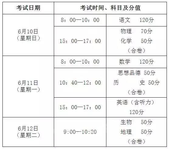 近日,棗莊市教育局公布了《棗莊市2018年初中學業水平考試暨高中段學校招生工作方案》,今年初中學業水平考試文化課考試時間為6月10日-12日。
