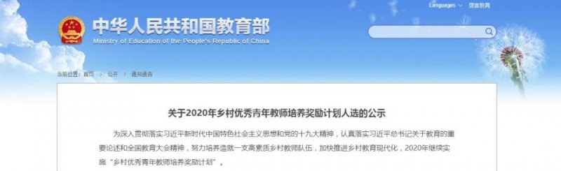 教育部對2020年鄉(xiāng)村優(yōu)秀青年教師