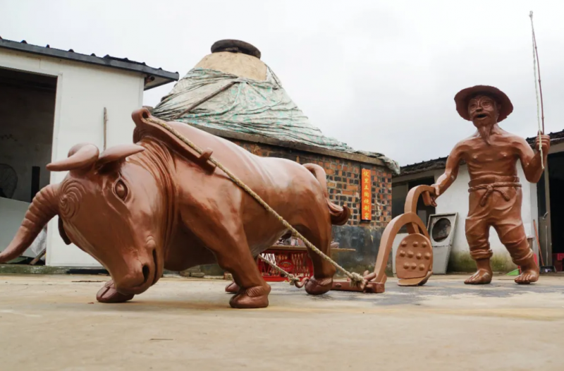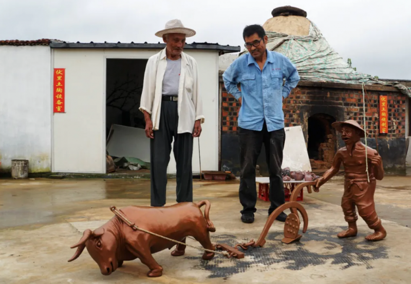 近日,伏里土陶傳承人甘信祥正在整理客人定做的新作《農(nóng)耕》。
