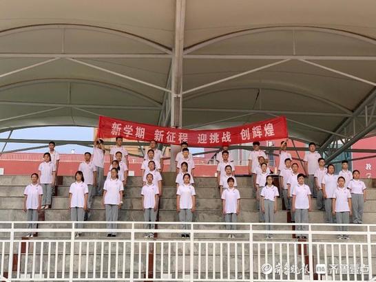在國(guó)旗下,學(xué)生代表向新入校的七年級(jí)新同學(xué)表示熱烈歡迎,并表示全體同學(xué)將努力奮進(jìn),唱響青春的贊歌,成為勇立時(shí)代潮頭的“后浪”!