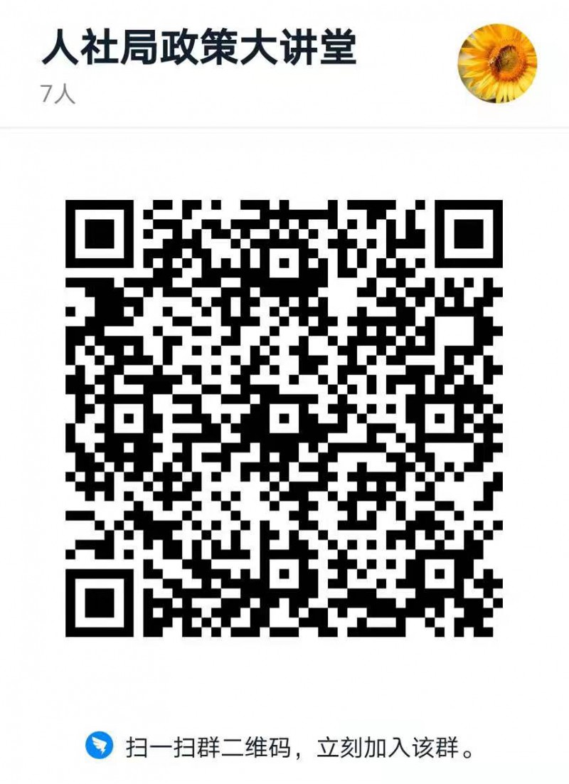 本次大講堂將采用釘釘群直播的方式:手機(jī)端下載釘釘app,在釘釘app中用掃一掃功能掃描下方群二維碼進(jìn)入釘釘群“人社局政策大講堂”即可觀看直播。