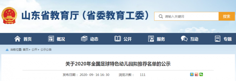 山東省教育廳網站發布