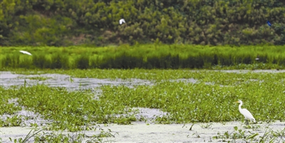 近日,數百只白鷺棲息在臺兒莊區趙村濕地。初秋的濕地中,白鷺或覓食蒲草之中,或展翅飛翔于水面之上。經過近年來的養護,該濕地現有籽蓮、水生鳶尾、再力花等水生植物600余畝。