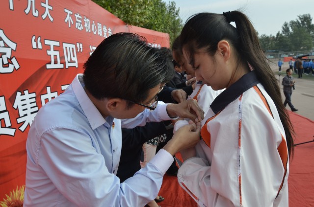 5月3日上午,棗莊市“不忘初心跟黨走” 新團員入團儀式示范活動在薛城區舜耕中學舉行。
