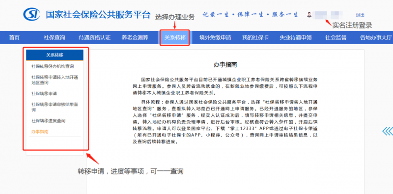 全程網辦。參保人員在新就業地參保繳費后,省內流動的,可登陸山東省政務服務網,提出轉移申請;