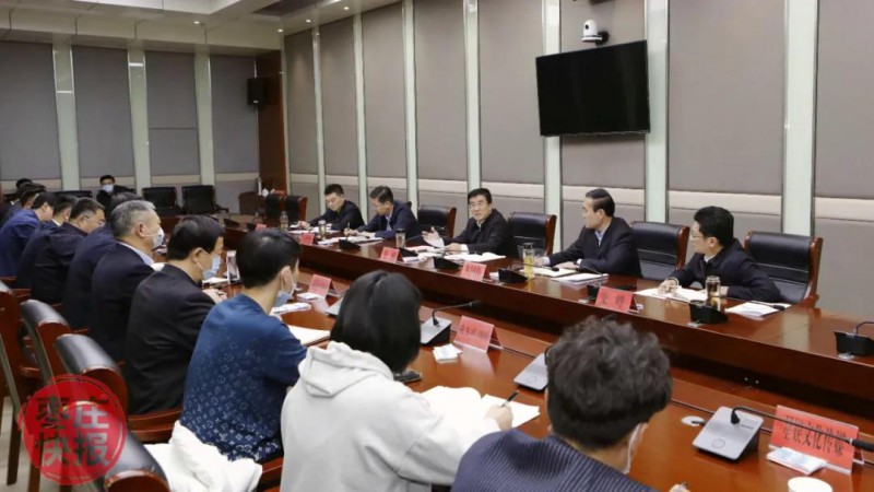 在市中區檔案館,李峰主持召開座談會,聽取了市中區外資外貿、服務業和電子商務有關工作的匯報,并圍繞我市“十四五”規劃編制,與泰和水處理、貴誠集團、曙光一線、衫客服飾等企業負責人進行了座談交流。