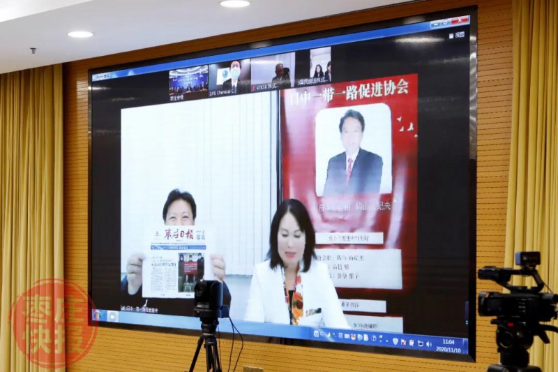 主會場活動結束后,棗莊分會場活動繼續進行。邵士官與日本JFE化工株式會社社長鈴木彰進行視頻連線對話;日中一帶一路促進協會理事長高邑勉通過視頻作了致辭。