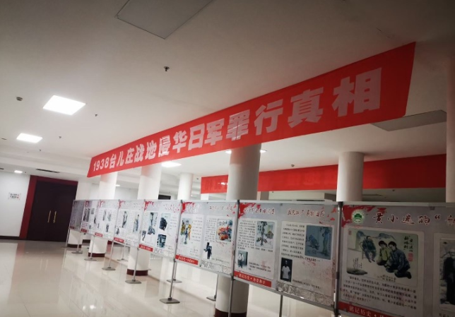 活動當天,臺兒莊大戰紀念館、臺兒莊戰役研究會主辦了“1938臺兒莊戰地侵華日軍罪行真相展”,揭露了日軍在臺兒莊的暴行。展出的部分內容源于我市退休教師任世淦先生長達二十年的實地調查,對數千位老人生前血淚控訴的原始記錄,配圖由河北省畫家王俊海先生繪制。一幅幅悲慘的畫面,一張張見證人的照片,一樁樁刺痛人心的屠殺慘案,便是那歷史噩夢的再現。