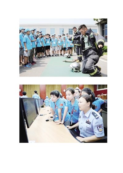 日前,市公安局組織100名立功受獎英模民警的子女走進警營,讓孩子們“零距離”接觸警營生活,感受父母工作的艱辛和肩負的責任。圖為:8月10日,在市中公安分局消防大隊,孩子們觀看消防人員演練。