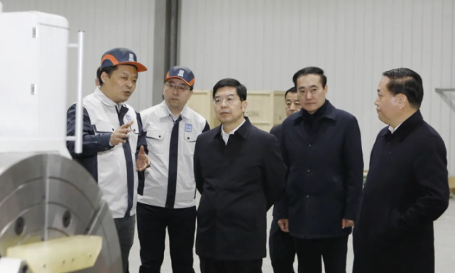 在交大智邦(棗莊)數字科技項目,陳平參觀了企業智能制造生產線,了解了研發創新、成果轉化情況。陳平希望交大智邦要充分發揮自身技術優勢,進一步深化與棗莊在機床、裝備制造、工業互聯網等領域的合作,找準契合點、延伸產業鏈,打造智能制造新標桿。