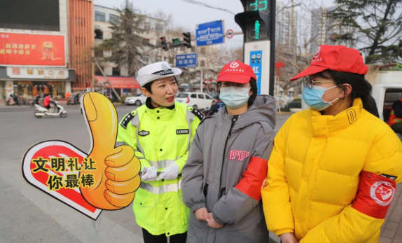 活動中,首先民警為學生開展一堂別開生面交通安全講座,從道路和車輛的特點、交通信號的意義、行人如何安全、文明參與交通、搭乘車輛安全常識等方面耐心的為學生們進行了講解。同時倡導同學們,臨近春節走親訪友時,監督家長、親朋好友要自覺遠離酒后駕車、不超速、不闖紅燈、自覺遵守交通法規。接著執勤交警為同學們示范交通指揮手勢,讓學生了解到手勢操的意義,在為部分同學進行了簡單的“崗前”培訓后, 執勤交警帶領他們到指揮崗體驗交警指揮疏導交通。同時,同學們手持“文明禮讓你最棒”大拇指,走上街頭進行交通文明引導。活動過程中,同學們一邊協助交警叔叔開展文明管理、協助維護好行人過馬路的通行秩序,一邊為過往行人發放文明交通宣傳彩頁。