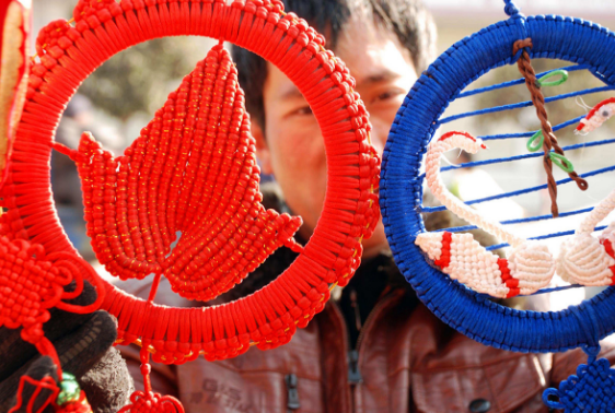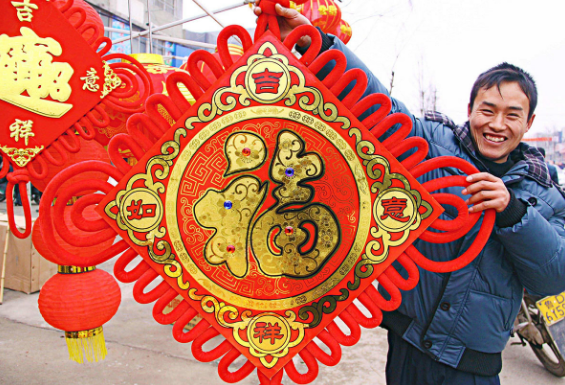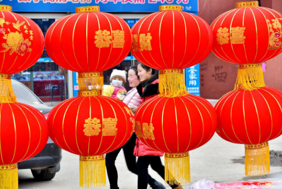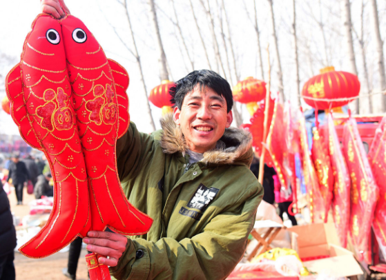 春節將至,在棗莊市山亭區鄉間年貨市場上,節日氛圍濃郁、寓意紅火幸福的中國結、紅燈籠、新春飾品等“文化年貨”受到鄉親們的青睞。(攝影:劉明祥)