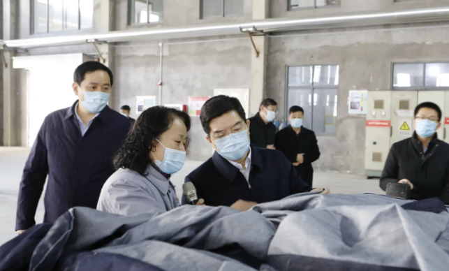 陳平首先來到山東正凱新材料公司,參觀了產品展室、智能化紡紗生產線、中控室,了解了產品種類、產能規模和數字化生產管控系統運行情況。陳平對該企業推進工業互聯網應用、實施智能化生產給予高度評價,并希望企業要繼續加強技術創新、管理模式創新,提升智能制造水平,打造智能化工廠的樣板和示范,引領全市紡織產業發展。在山東維高紡織服裝公司,陳平察看了織布、染色車間,詢問了企業“退城進園”、技術改造、生產經營情況。陳平勉勵企業負責人要堅定發展信心,擴大投資規模,以市場需求為導向,廣泛采用新技術、新工藝,加強新產品開發,不斷增強核心競爭力。海揚中泰服裝公司主要從事牛仔服裝生產加工,陳平參觀了生產車間,了解生產工藝、產品種類、出口情況。陳平希望企業要抓住當前內需擴大、消費升級的機遇,創新管理模式,實施智能化改造,提高生產效率和產品質量,深化與世界知名品牌的合作,努力擴大出口規模,促進企業做大做強。在山東海之杰紡織,陳平了解了企業產品種類、外貿出口、市場營銷情況,鼓勵企業結合國內外服裝市場需求,依托現有產能,不斷開發新產品、開拓新市場,提高產品的競爭力和附加值。