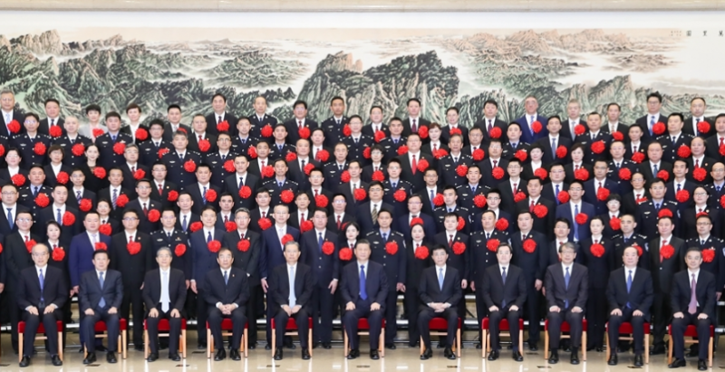 3月29日,黨和國家領導人習近平、王滬寧、趙樂際等在北京會見全國掃黑除惡專項斗爭總結表彰大會代表。 新華社記者 饒愛民 攝