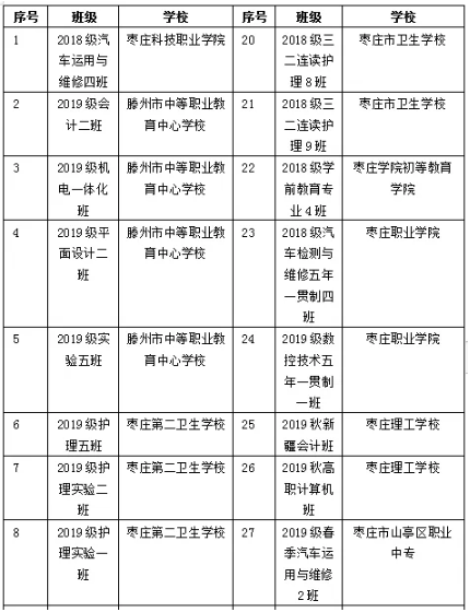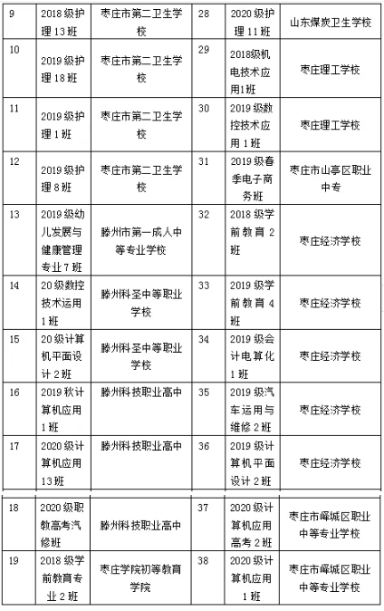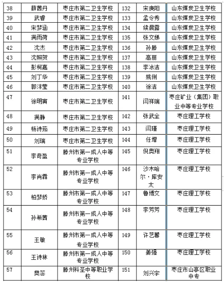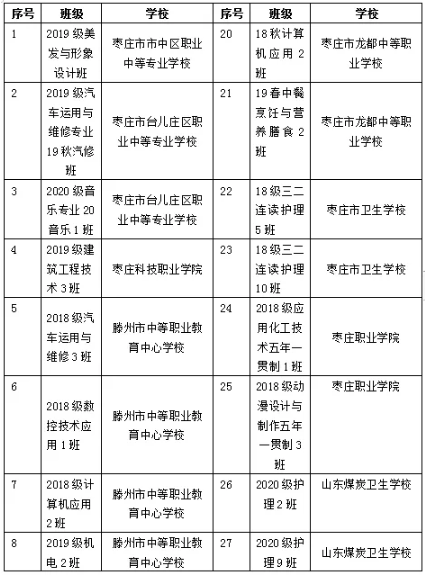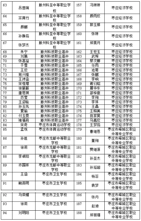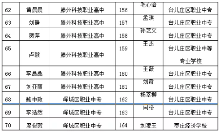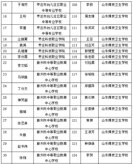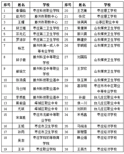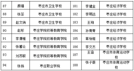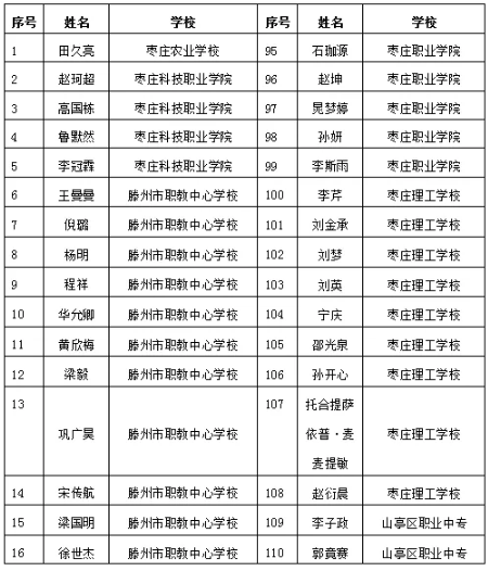 棗莊市中等職業學校市級優秀學生、優秀學生干部和先進班集體名單