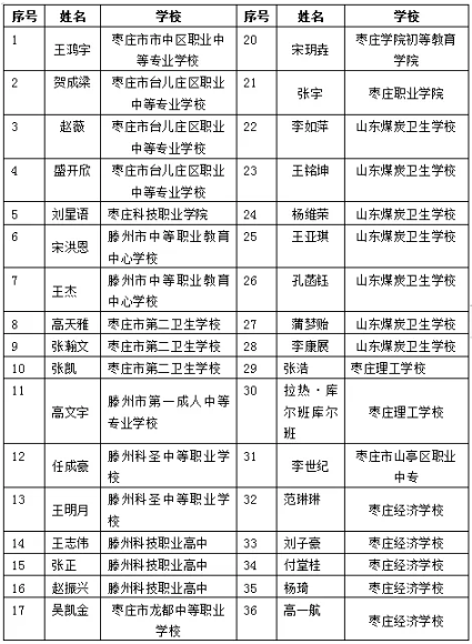 附件:棗莊市中等職業學校省級優秀學生、優秀學生干部和先進班集體名單