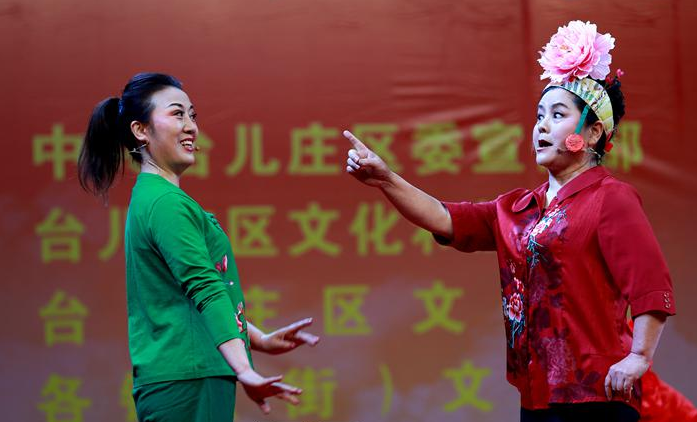 4月24日,臺兒莊區電影院演播大廳華燈璀璨、絲竹繞耳。臺兒莊區2021年莊戶劇團文藝調演拉開帷幕,載歌載舞慶祝中國共產黨成立100周年,此次調演為期兩天,全區26個劇團、近百個劇目參加。