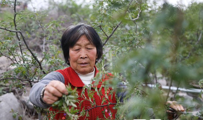 在水泉鎮板上村,近十名椒農們正在忙著給花椒樹抹芽。來自鄰村的薛俠正在忙著分揀花椒葉,她告訴記者,現在正值花椒樹抹芽關鍵時期,如果任其自然生長,則往往樹冠郁閉,花椒產量減低,品質下降。往年都會直接將抹芽后的花椒葉隨手扔掉, 現在隨著市場的不斷認可,可以將抹芽后的花椒葉送往市場銷售。好品相的花椒葉一斤能賣7、8塊錢,現在還能為家庭增加收入,“這樣的好事哪兒找去呢?趁著嫩芽趕緊摘!”