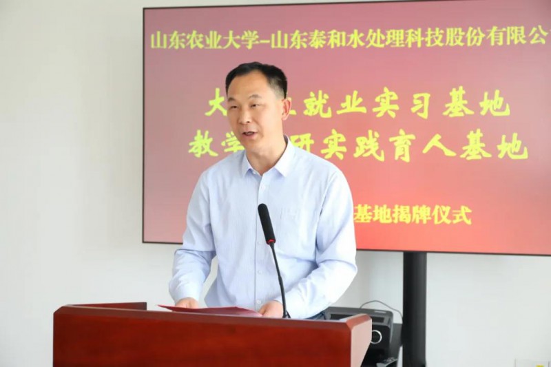 5月9日,山東農(nóng)業(yè)大學(xué)大學(xué)生就業(yè)實(shí)習(xí)基地、教學(xué)科研實(shí)踐育人基地掛牌儀式在市中區(qū)山東泰和水處理科技股份有限公司舉行。山東農(nóng)業(yè)大學(xué)黨委常委、副校長(zhǎng)辛杰,學(xué)生工作處處長(zhǎng)王群,教務(wù)處副處長(zhǎng)接玉玲,化學(xué)與材料科學(xué)學(xué)院院長(zhǎng)艾仕云;區(qū)委副書記、區(qū)長(zhǎng)劉中波,區(qū)人大常委會(huì)副主任姬鴻鵠,副區(qū)長(zhǎng)宋海芳;山東泰和水處理科技股份有限公司董事長(zhǎng)程終發(fā)出席。