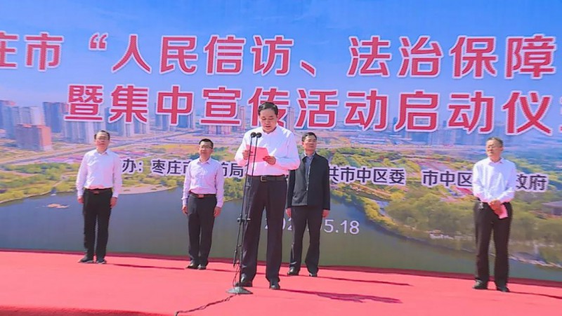 5月18日,2021年度棗莊市“人民信訪、法治保障”宣傳周暨集中宣傳活動啟動儀式在市中區光明廣場舉行。市委副秘書長、市信訪局局長黃繼忠,區委書記王輝,區委常委、政法委書記羅春耕出席活動。