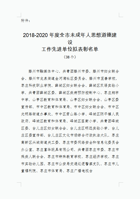 附件:2018-2020年度全市未成年人思想道德建設工作先進單位和先進工作者擬表彰名單
