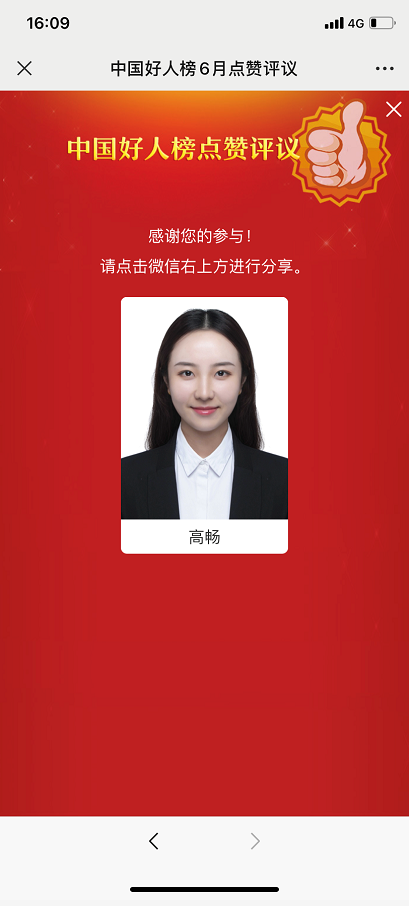 最后,動動手指,您可將您支持的好人轉發到朋友圈,為她打CALL!