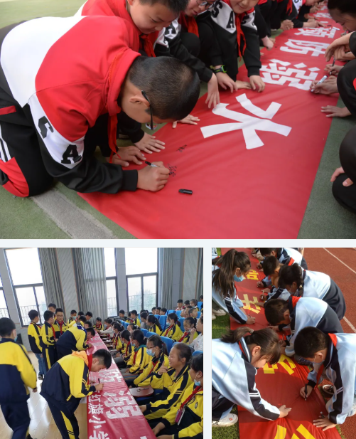 各學校下發《致家長一封信》對家長群體進行防溺水知識的宣傳普及,讓家長了解預防溺水的重要性和緊迫感,加強家校溝通,共同做好防溺水教育。家長和孩子一起簽訂《防溺水安全教育承諾書》,使家長切實承擔起監護責任,讓安全教育落實到每一位隊員身上。隊員在防溺水宣傳條幅上簽上了自己的名字,以此堅定防溺水、遠離危險的決心。