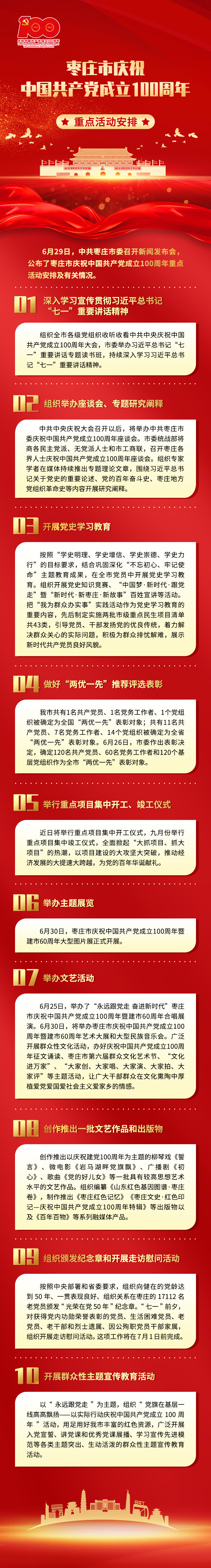 一圖讀懂 ▏棗莊市慶祝中國共產黨成立100周年重點活動安排