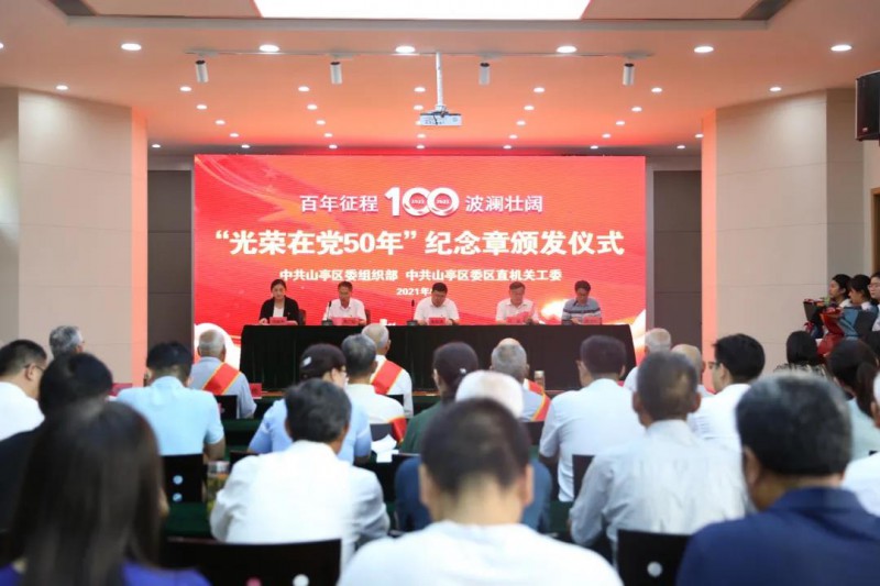 一百年征程浩蕩,五十載初心如磐。在中國共產黨成立100周年到來之際,近日,山亭區委組織部、區直機關工委共同舉行“光榮在黨50年”紀念章頒發儀式,為區直機關老干部黨支部、新城老干部黨支部及部分區直單位獲得“光榮在黨50年”紀念章的老干部老黨員頒發紀念章。