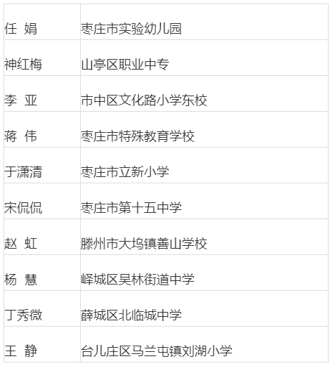 第四屆“棗莊最美教師”人選名單