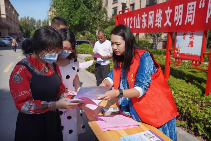 隨后,志愿者們到達翼云社區,向社區居民發放山東網絡文明周“網絡同心 文明同行”倡議書。通過此次活動開展,使“文明上網”意識深入每個黨員、志愿者、社區居民心中,讓大家不僅學到了安全上網的知識,而且明白了文明上網的重要性,增強了自覺抵御不良信息,抵制網絡低俗之風的意識,對促進文明上網,營造綠色網絡環境,確保網絡文明等方面起到了積極的推動作用。