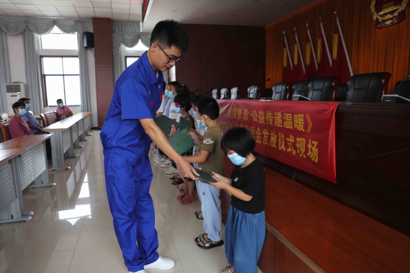 “謝謝陳叔叔送給我助學(xué)金,我一定好好學(xué)習(xí),長(zhǎng)大也要像您一樣幫助別人。”9月11日上午,山東藍(lán)如石油化工集團(tuán)有限公司、藍(lán)色星站運(yùn)營(yíng)管理有限公司為棗莊市嶧城區(qū)底閣鎮(zhèn)20名困難學(xué)子發(fā)放公益助學(xué)金,受到資助的學(xué)生感動(dòng)地說(shuō)。