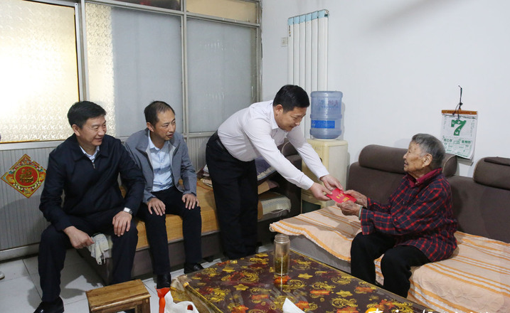 在百歲老人閆王氏家里,楊雷拉著老人的手,關(guān)切地詢問(wèn)老人的身體、飲食起居等方面情況,為老人送上慰問(wèn)金和慰問(wèn)品,并向老人致以節(jié)日的祝福。看到老人雖已百歲高齡,但身體硬朗,精神矍鑠。楊雷祝愿老人福如東海、壽比南山。