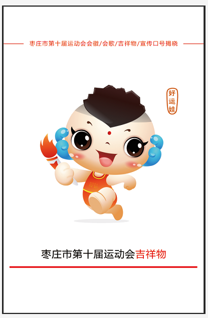 為打造體育文化、傳承體育精神、提升賽會品牌價值,組委會面向全國公開開展了會徽、會歌、吉祥物、主題宣傳口號征集活動。來自全國25個省、自治區和直轄市的300余名作者報送了2647件應征作品。經過專家組兩輪評審、一輪網絡甄別,最后評出了會徽入選作品《全民健身》、會歌入選作品《超越夢想》、吉祥物入選作品《好運娃》、主題宣傳口號入選作品“紅色棗莊,多彩十運”。這些作品的構成元素體現了棗莊文化特色和內涵,勾勒了棗莊熱烈奔放的外在形象,呈現了建市60年來棗莊體育事業高質量發展的豐碩成果,是對市十運會辦會理念的科學闡釋和體育強國建設遠景目標的有效傳播,為市十運會的舉辦增添了獨特的藝術魅力和文化氛圍。